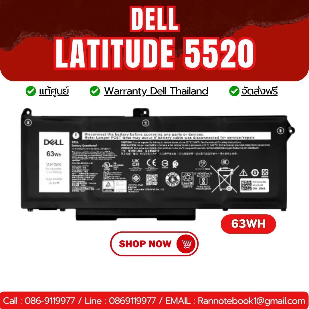 แบตเสื่อมหรือใช้งานได้ไม่นาน RJ40G คือคำตอบ! ความจุ 63Wh (4‑Cell) แรงดัน 15.2V ใช้งานได้ต่อเนื่องยาวนาน งานหนักได้สบาย มาพร้อม ประกัน Dell Thailand 1ปีเต็ม 🔧 ข้อมูลแบตเตอร์