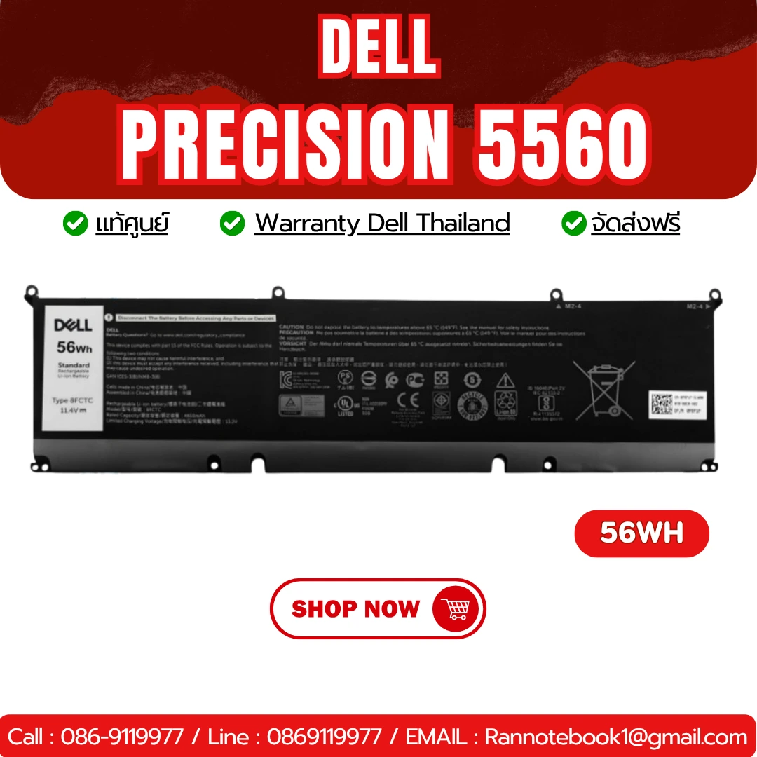 แบตเตอรี่เสื่อม ชาร์จไม่เข้า แก้ง่ายๆ 8FCTC Dell Precision 5560 รุ่น 56Whr รับประกันศูนย์ 1 ปี ราคาลดพิเศษคลิ๊ก และ สามารถอัพเกรดความจุแบตได้ด้วย คุณสมบัติ Battery Dell Precision 5560